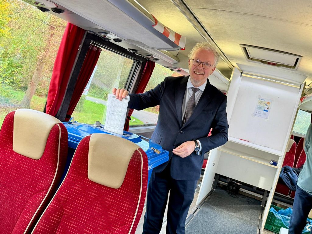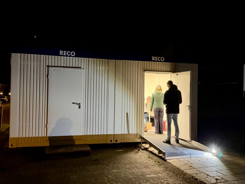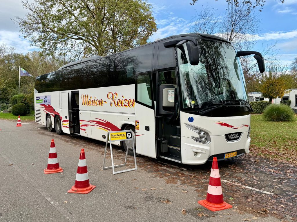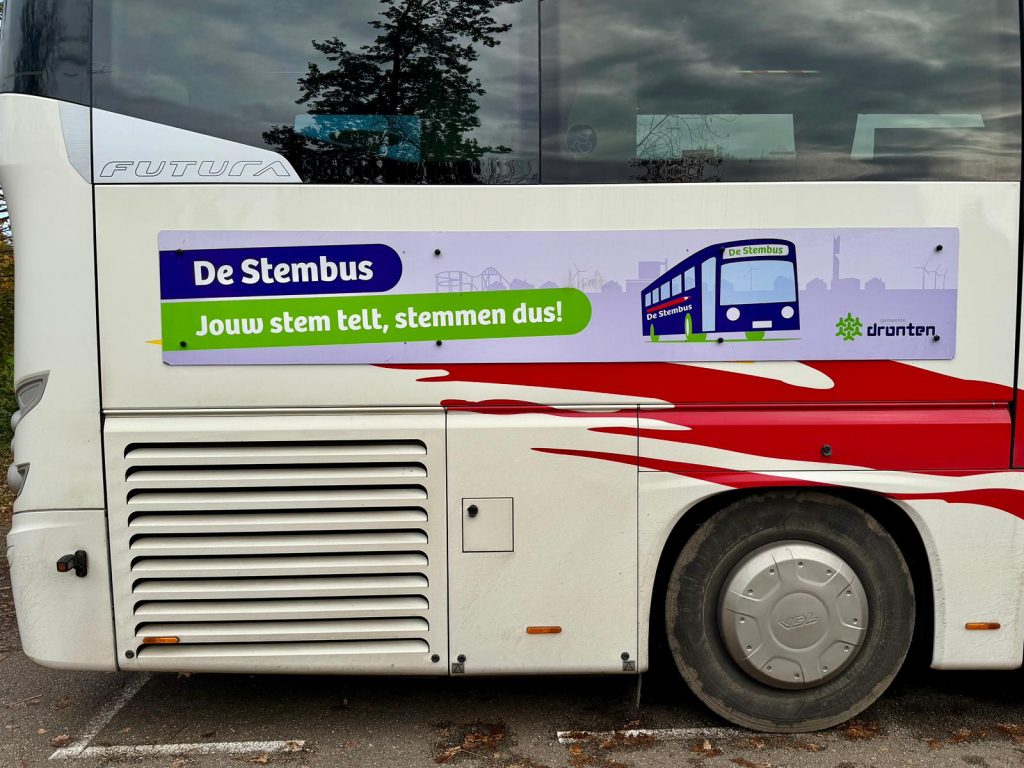 Oftewel een mobiel stembureau. Dit is ons nieuwste stembureau, hij is speciaal geplaatst op de nieuwbouwlocatie. Totaal hebben we 22 stembureaus.
